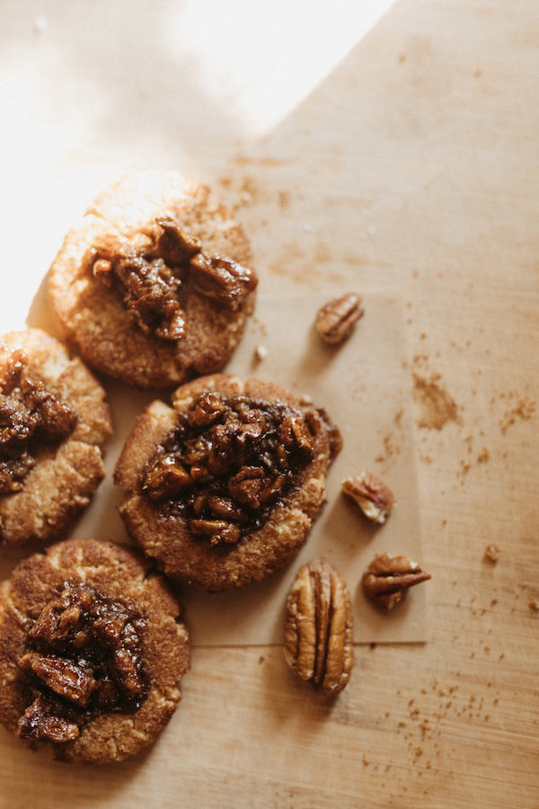 Indulge in the perfect combination of flavors with our mouthwatering maple pecan cookies. Each cookie is delicately rolled in coconut sugar, adding a delightful hint of sweetness. Topped with raw, chopped pecans, drizzled with a luscious coconut syrup, these cookies offer a satisfying crunch and nutty texture. To enhance the experience, we sprinkle them with a pinch of Mediterranean Sea salt, elevating the taste to a whole new level. With every bite, you'll savor the rich maple flavor, the irresistible coconut undertones, and the satisfying crunch of pecans. These cookies are the ultimate treat for anyone with a sweet tooth and a love for unique, decadent flavors.